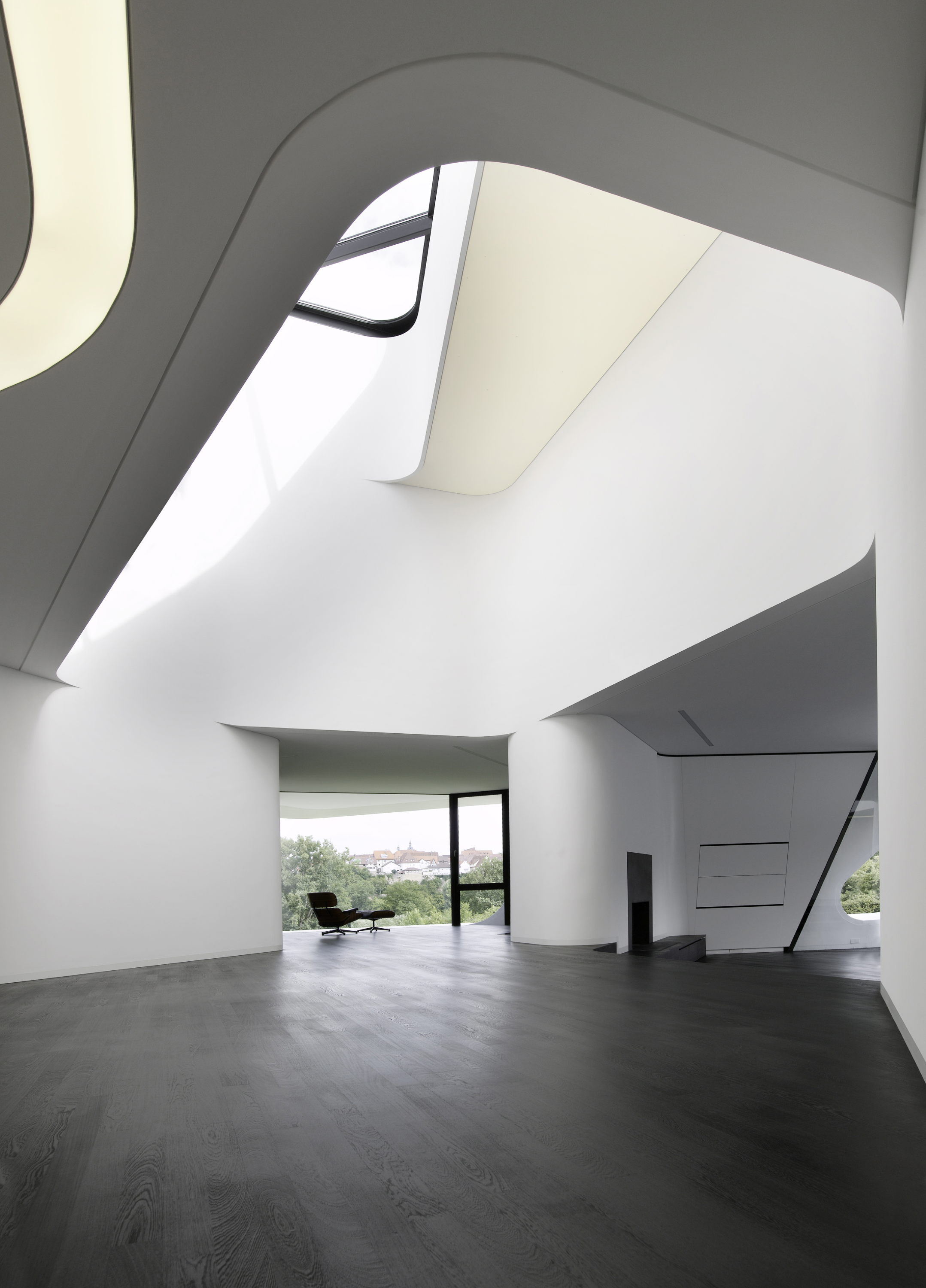 Il risultato è una sorprendente rimodellazione plastica con la pelle flessuosa dell’immobile che collega ed avvolge l’intero stabile concedendo ampie aperture sulla spettacolare vista del fiume Nektar e del centro storico di Marbach.